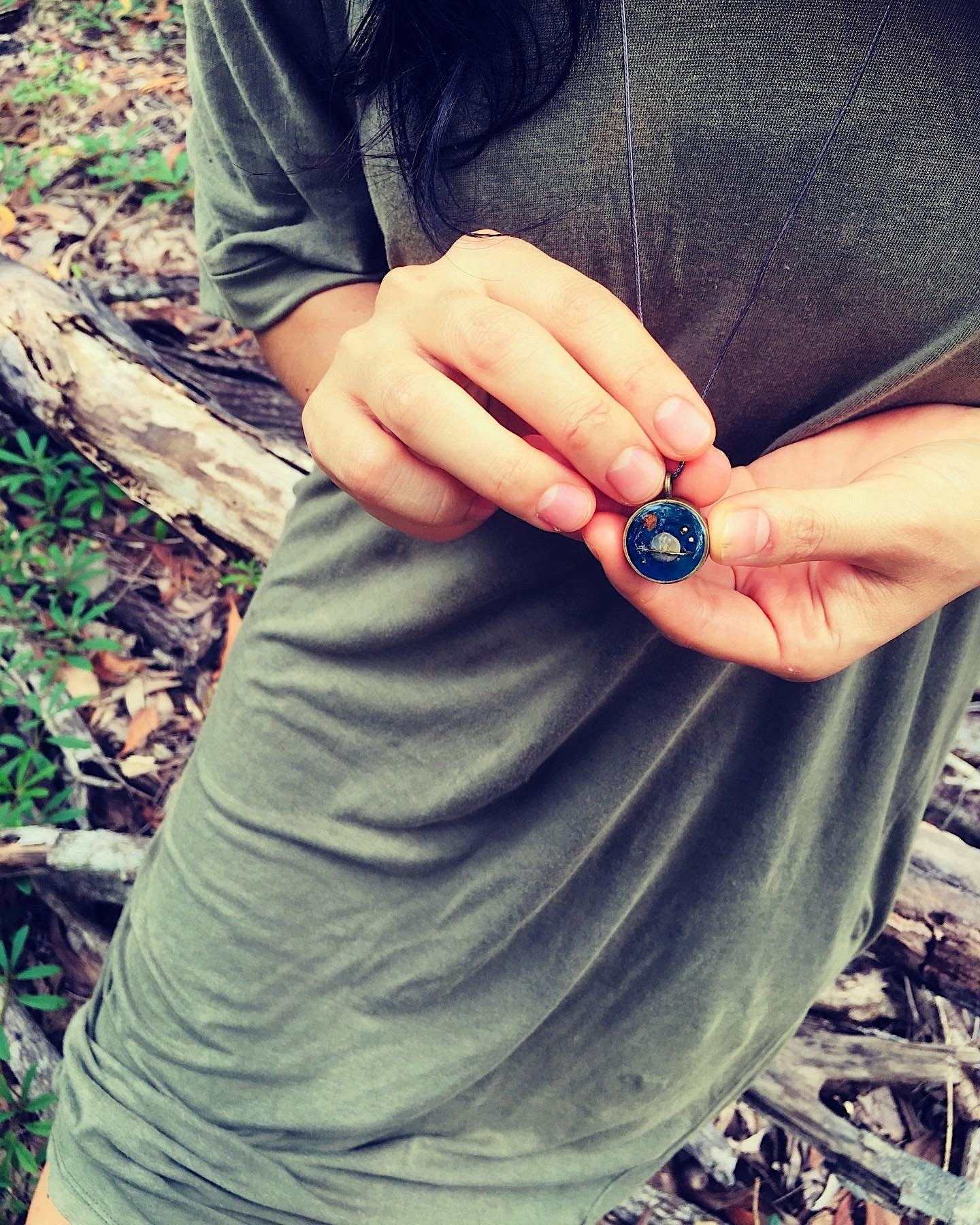 Earth, Planet, Meteorite... Made from natural stones and pebbles found locally in Australia. Most of the natural materials used in the pendants were handpicked by me. Made with love. Can you see the tiny sand stars?